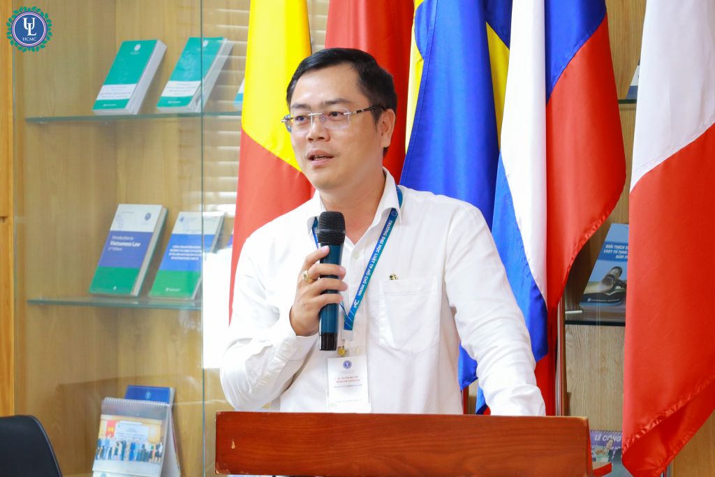 Phiên thứ hai của tọa đàm tiếp tục đi sâu vào việc xây dựng nền tảng phương pháp luận và kỹ năng học thuật cần thiết cho việc triển khai luận án tiến sĩ luật học. TS. Đỗ Thanh Trung – Khoa Luật Hành chính Nhà nước trình bày các trường phái lý luận pháp lý và nhấn mạnh vai trò của phương pháp nghiên cứu trong việc xác lập hướng đi khoa học của luận án. Tiếp nối nội dung này, PGS.TS. Lê Huỳnh Tấn Duy - Phó Trưởng khoa Luật Hình sự, đã chia sẻ kinh nghiệm viết và công bố bài báo quốc tế trong lĩnh vực khoa học pháp lý. Theo PGS.TS. Lê Huỳnh Tấn Duy, việc công bố quốc tế không chỉ là yêu cầu học thuật ngày càng quan trọng mà còn là cơ hội để nghiên cứu sinh khẳng định vị thế cá nhân, mở rộng ảnh hưởng học thuật và đóng góp cho cộng đồng pháp luật toàn cầu.